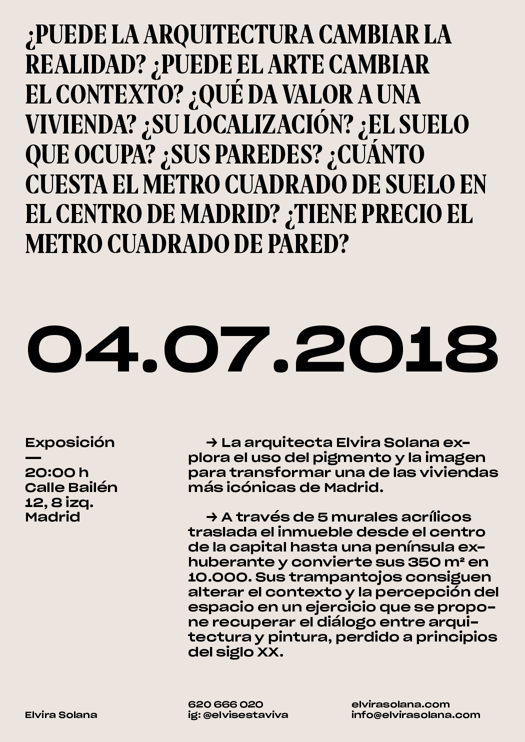 Graphic identity for the art project “ESTADO REAL. Ampliando a Cano Lasso, de 350 a 10.000m2”, exhibition of the architect and painter Elvira Solana.